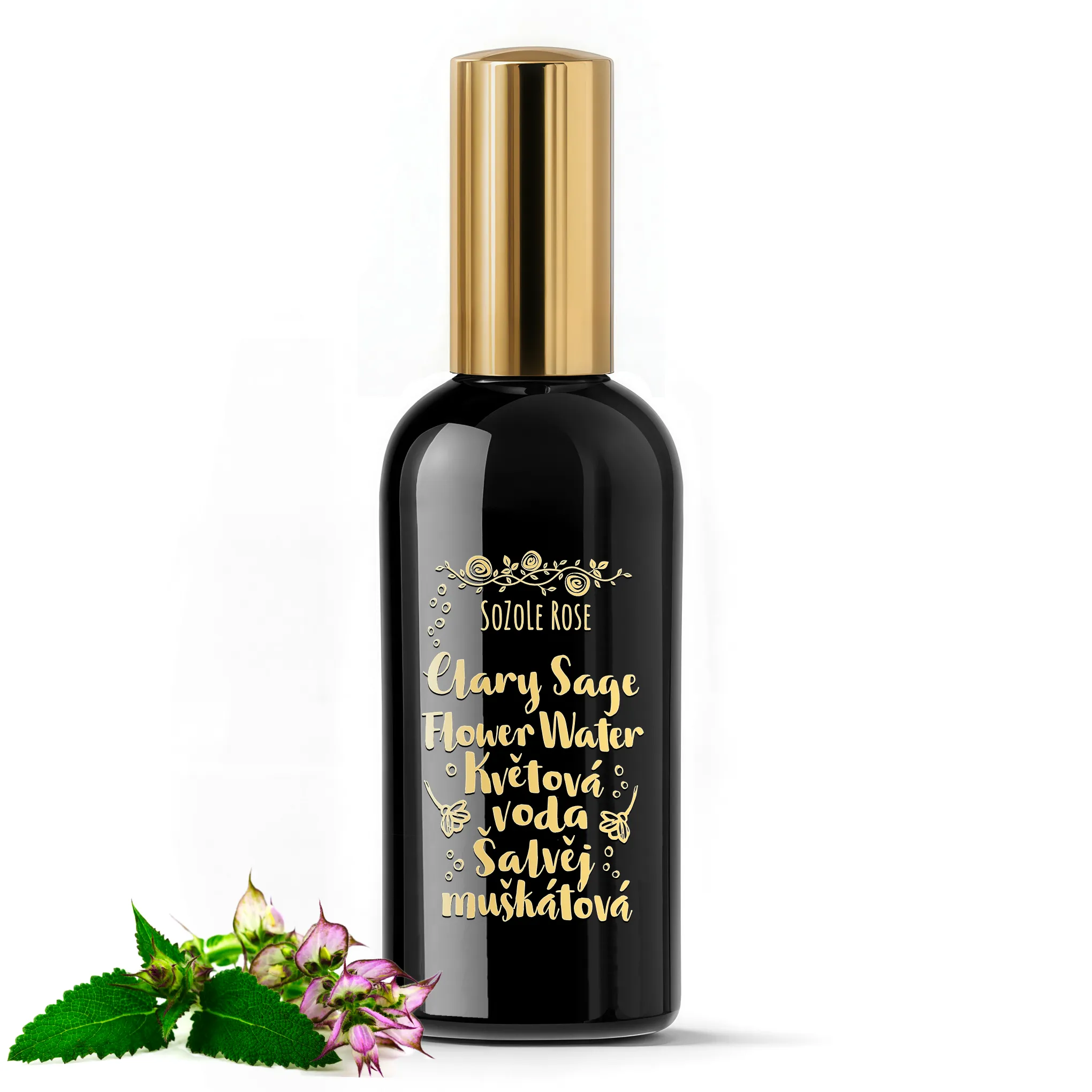 100% Clary sage flower water or hydrosol in a spray bottle