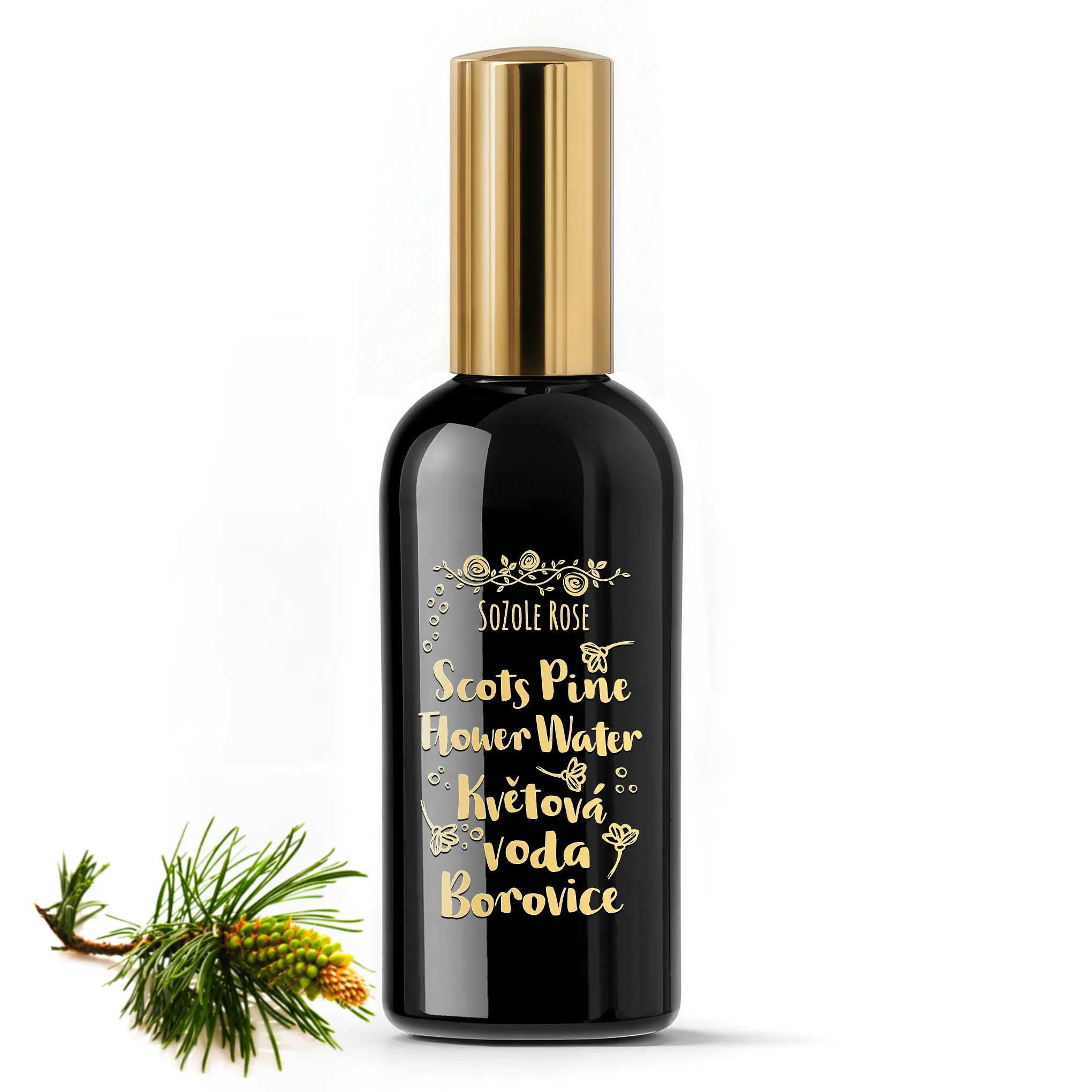100% Scots Pine hydrolate in atomizercleanses, refreshes and supplies energy in periods of fatigue and general exhaustion. Oily and problematic skin will appreciate it for its naturally antiseptic properties. Its warm woody fragrance with green undertones helps overcome crises and relieves sadness. Luxurious black refillable glass case with a perfect aluminum spray. For your perfect mist at any time of the day.
